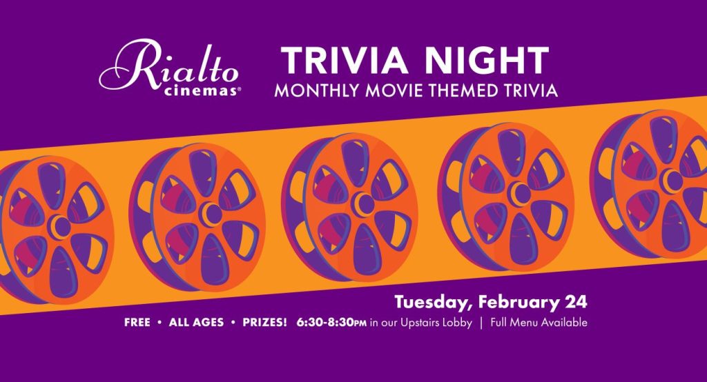 Join us monthly in the 3rd floor lobby at Rialto Cinemas Sebastopol for four rounds of general knowledge trivia with a film twist! All ages are welcome and participation is free! Food and drink available for purchase and prizes for winning teams!